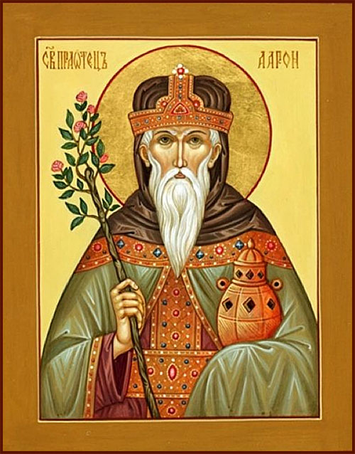 Ааро́н – († 1445 до Р.Х.) первый ветхозаветный первосвященник, брат пророка Моисея, потомок Левия, сын Амрама и Иохаведы (Исх.6:20; Числ.26:59). Бог назначил Аарону говорить к народу вместо его косноязычного брата, Моисея. Аарон должен был стать «устами» Моисея (Исх.4:16) и его пророком (Исх.7:1). Аарон был первым первосвященником и основателем единственного законного рода священнослужителей. Моисей получает от Бога повеление посвятить Аарона и его сыновей в священники. Потомки Аарона получили право наследовать первосвященство (Исх.29:29). Предназначение священников и их обязанности, права на жертвоприношения и их обеспечение устанавливаются Самим Богом (Числ.4:18). Священников Израиля называли «домом Аарона» (Пс.117:3).