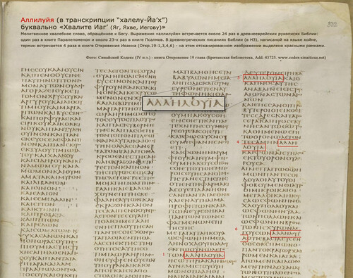 По слову проф. М. Скабаллановича: «кроме слова аминь, аллилуйя – это единственное еврейское выражение, которого не дерзнула коснуться рука переводчика, оставив его в тех звуках, в которых оно вдохновлено Самим Богом».