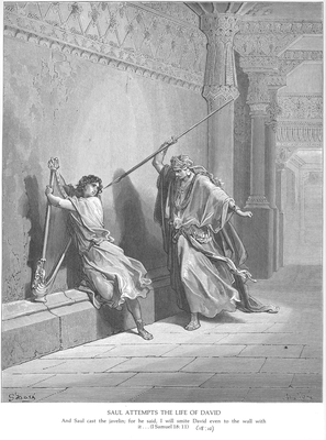 “Покушение Саула на Давида”. Г. Доре. 1877.