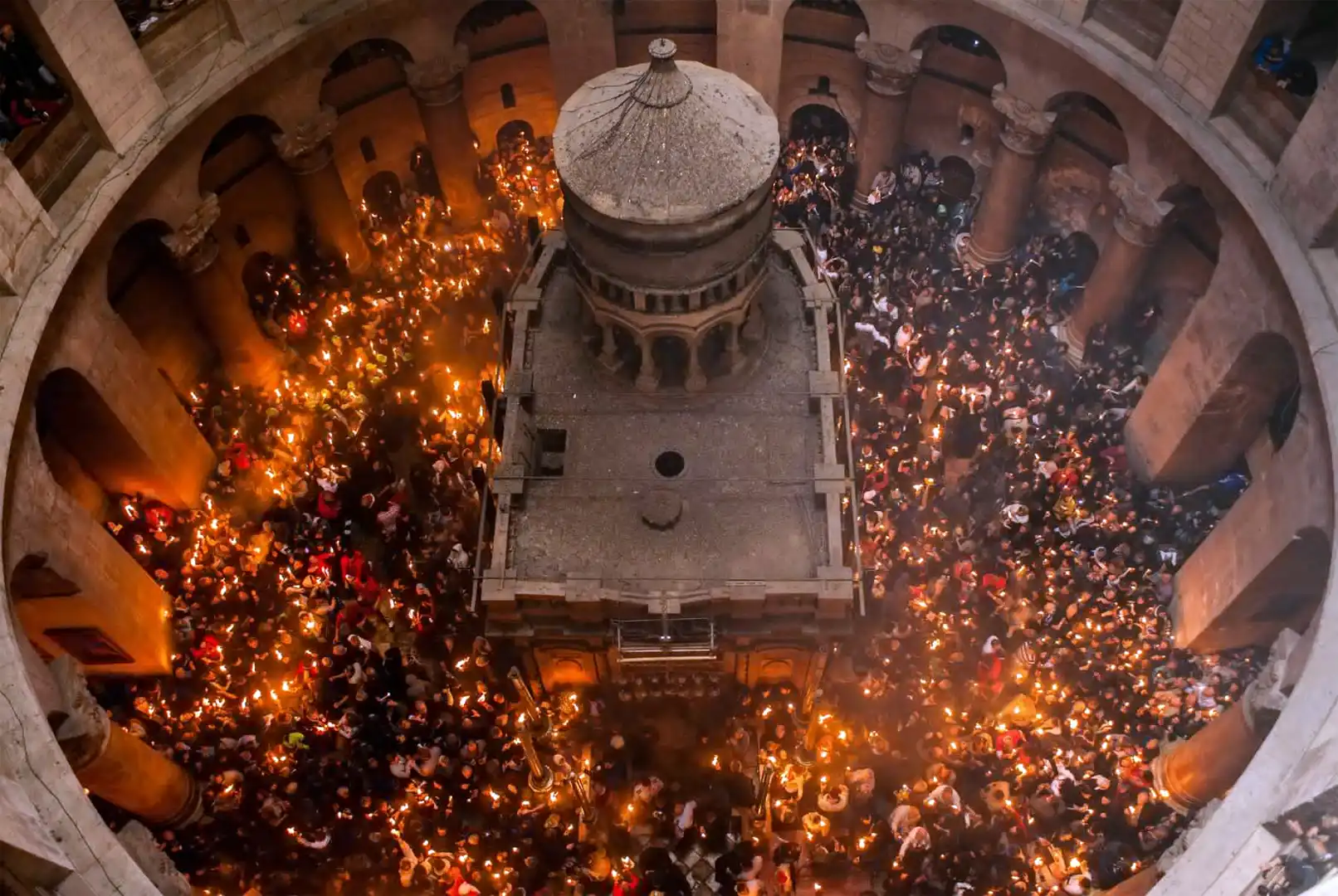Вид сверху на Кувуклию, Гроб Господень в Иерусалимском храме Гроба Господня.