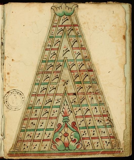 Евангельская стихира «Мариины слезы» в нотации «топориками» (фрагмент). Из кн.: Октоих нотного пения. 7-е изд. Москва, 1811