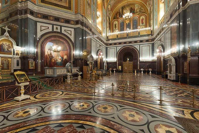 В кафедральных соборах, а также на архиерейское служение посреди церкви ставится еще амвон архиерейский, на котором архиереи облачаются и стоят при начале литургии, во время молебнов и при некоторых других церковных службах.