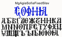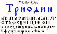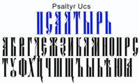 Гарнитура взята из Псалтири издания Киево-Печерской лавры предположительно середины 19 в. Помимо специфичных деталей, делающих узнаваемой любую киево-печерскую гарнитуру, этот шрифт оставляет впечатление суровости и строгости рисунка. При взгляде на него на ум приходят морозные Соловки и Валаам, но... родился он в теплой Украине. |