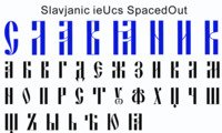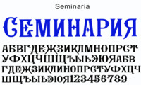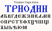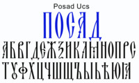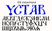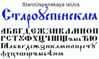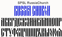 Гарнитура использовалась в синодальных изданиях второй половины 19 - начала 20 века. Размер (кегль) оригинальных литер довольно большой: высота строчных букв порядка 5 мм. Этой гарнитурой набирались напрестольные Евангелия, крупноформатные издания акафистов и т.п. |