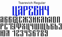 Гарнитура взята из изданий второй половины 16 века (типографии городов Вильно и Острога). Создателем гарнитуры, предположительно, является Петр Мстиславец, восточнославянский типограф, соратник первопечатника Ивана Фёдорова. |