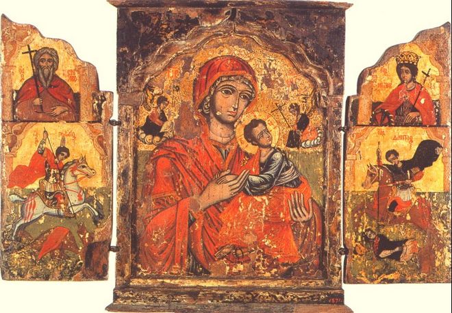 Икона Пресвятой Богородицы Гелатская находится в Гелатском (Гаенатском) монастыре. Вычеканена из позолоченного серебр...