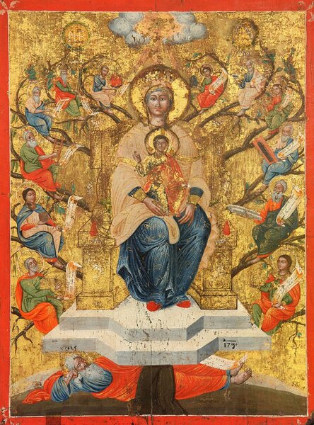 На иконе изображена родословная Иисуса Христа по линии Пресвятой Богородицы. Согласно ветхозаветным пророчествам, Хри...