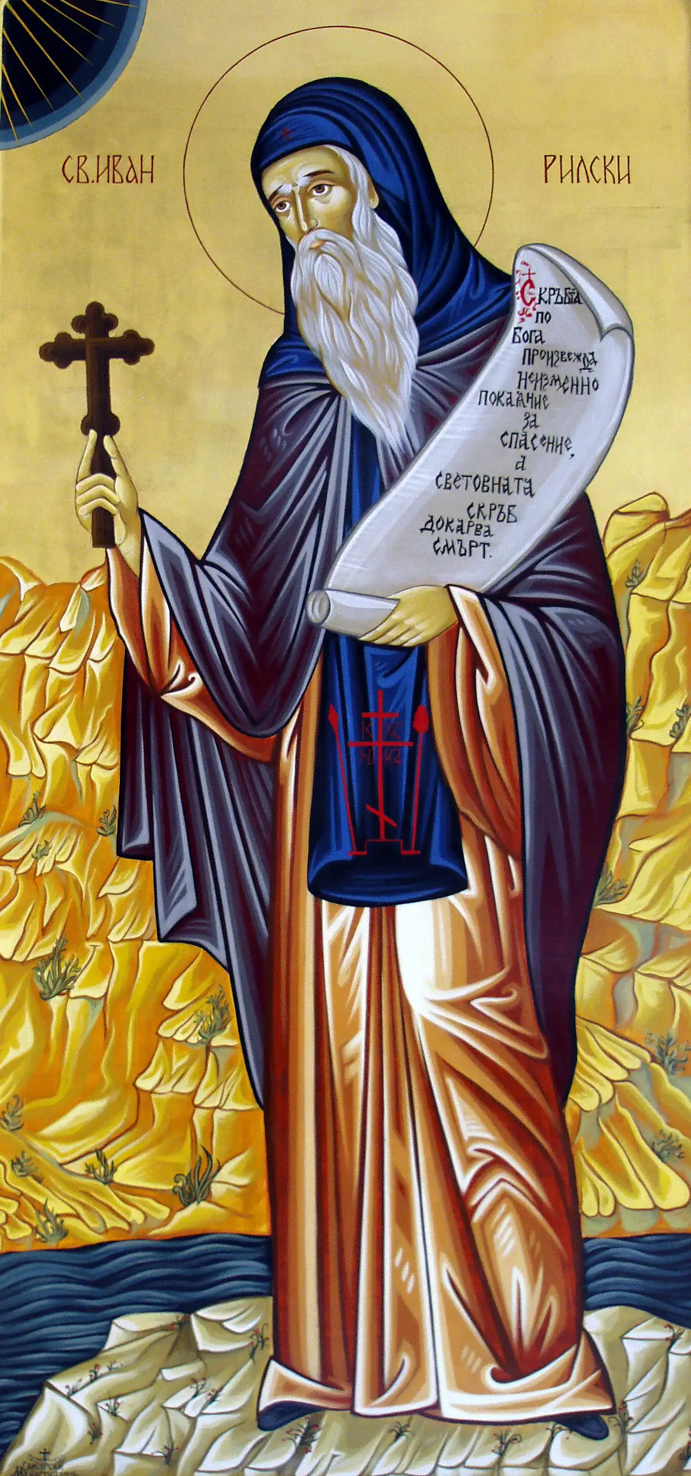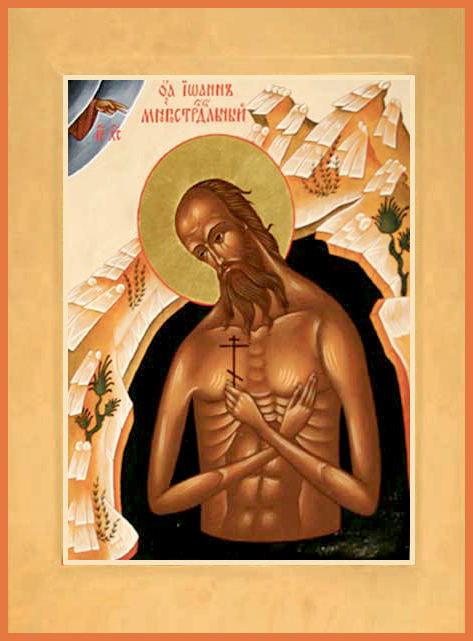 Припев: Преподо́бне о́тче Иоáнне, моли́ Бо́га о на́с.