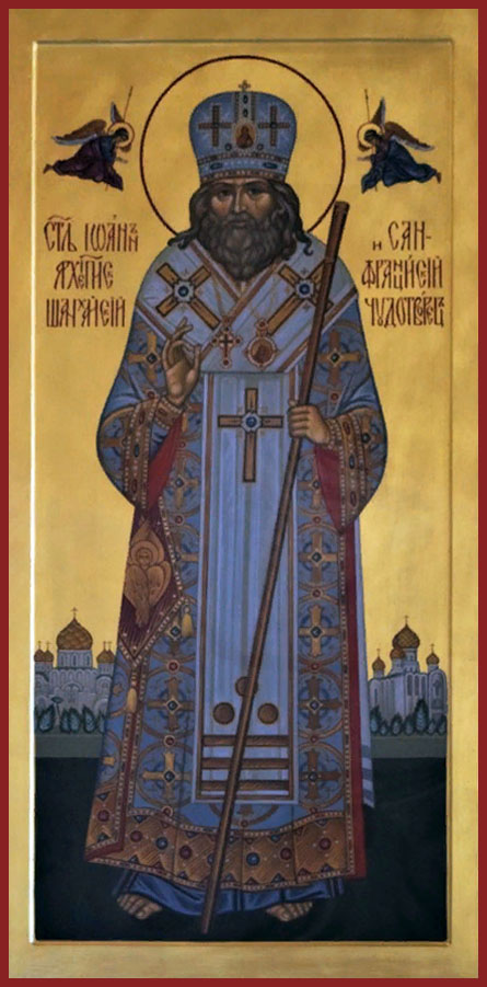 Припев: Святи́телю о́тче Иоáнне, моли́ Бо́га о на́с.