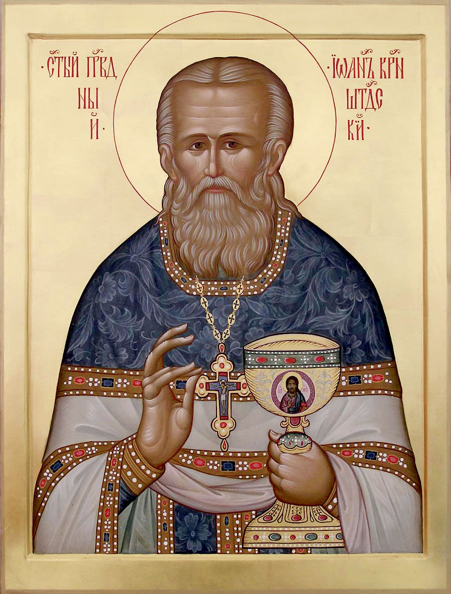 Припев: Святы́й блажéнный о́тче Иоа́нне, моли́ Бо́га о на́с.