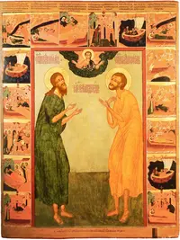 Припев: Святи́телие Иоáнне и Феóдоре, моли́те Бо́га о на́с.
