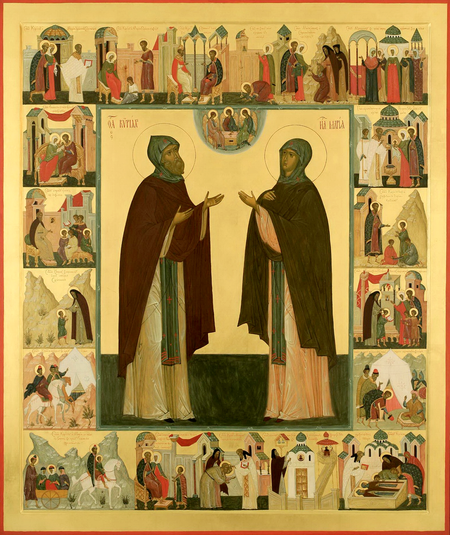 Память: 31 (18) января, 11 октября (28 сентября), Глас 8. Припев: Преподо́бнии Кири́лле и Мари́е, моли́те Бо́га о на́с. |
