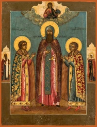 Память: 3 июня (21 мая) Глас 4. Припев: Припев: Святи́и благове́рнии кня́зие Константи́не, Михаи́ле и Фео́доре, моли́те Бо́га о на́с. |