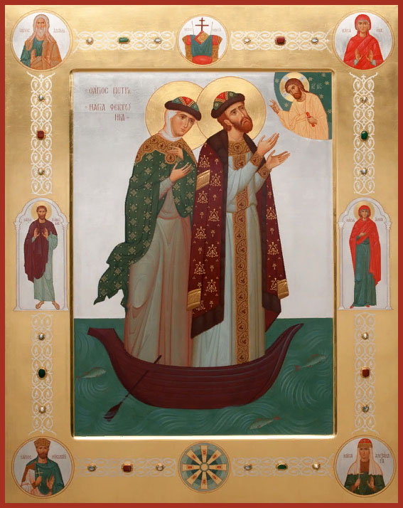 Память: 8 июля (25 июня), 17 (4) сентября, Глас 8. Припе́в: Святи́и благове́рнии кня́же Пе́тре и княги́не Февро́ние, моли́те Бо́га о на́с. |