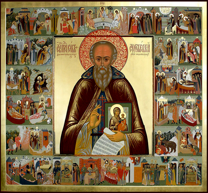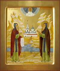 Память: 18 (5) июля, 8 октября (25 сентября), 30 (17) ноября Глас 8. Припев: Преподо́бнии отцы́ Сéргие и Ни́коне, моли́те Бо́га о на́с. |