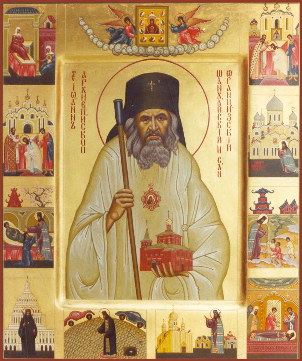 Конда́к, гла́с 4: Христу́ Пастыренача́льнику после́довав, во святи́телех изря́днейший яви́лся еси́, спа́сл бо еси́ о́вцы своя́ от губи́тельства безбо́жных, приста́нище ми́рное те́м учреди́в, и попече́ние непреста́нное о па́стве име́я, врачева́л еси́ и́х неду́ги душе́вныя же и теле́сныя, и ны́не о на́с к твои́м честны́м моще́м припа́дающих, моли́ Христа́ Бо́га, о́тче Иоа́нне, в ми́ре спасти́ся душа́м на́шим. И́кос: Небеса́ ны́не с на́ми ра́дуются, и ли́цы святы́х прие́млют но́вое и пресла́вное украше́ние: апо́столи пропове́дника всеми́рнаго целу́ют, му́ченицы дре́внии восхваля́ют ди́вно просла́вльшаго па́мять и́х, святи́телие собесе́дуют ра́вному в словеси́ и прему́дрости, бде́нному же подви́жнику преподо́бнии дивя́тся, ца́рие святи́и моли́твенника о возстановле́нии ца́рства правосла́внаго почита́ют, безсре́бреницы с цели́телем безме́здным мзду́ нетле́нную и недели́мую разделя́ют: ели́ко всесла́вно бы́сть служе́ние твое́, о́тче Иоа́нне, та́ко и венце́в тебе́ исплете́ся мно́жество. Но моли́ся ку́пно с ли́ки святы́х ко Христу́ Бо́гу о на́с, к честны́м моще́м твои́м припа́дающих, в ми́ре спасти́ся душа́м на́шим.