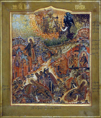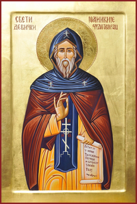 Память: 24 (11) апреля, 1 мая (18 апреля) Глас 8. Припев: Преподо́бне о́тче Иоа́нне, моли́ Бо́га о на́с. |