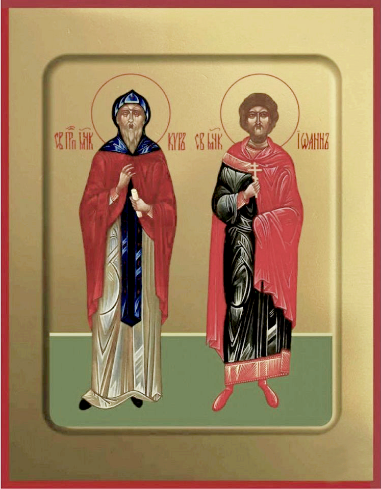 Память: 13 февраля (31 января), 11 июля (28 июня) Глас 8. Припев: Святи́и мýченицы Ки́ре и Иоáнне, моли́те Бо́га о на́с. |