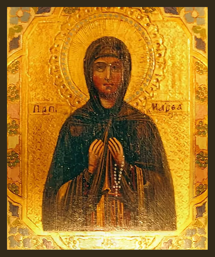 Память: 2 апреля (20 марта), 14 (1) апреля Глас 4. Припев: Преподо́бная ма́ти Мари́е, моли́ Бо́га о на́с. |