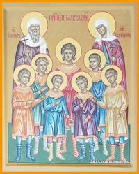 Память: 17 (4) августа, 4 ноября (22 октября), Глас 8. Припев: Святи́и о́троцы, моли́те Бо́га о на́с. |
