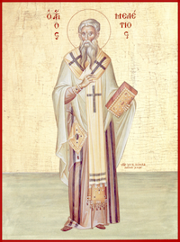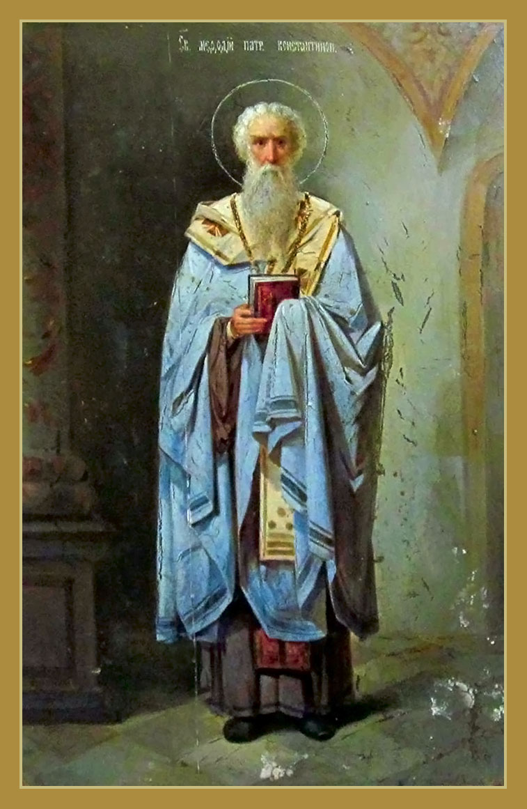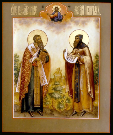 Память: 27 (14) февраля, 24 (11) мая, 19 (6) апреля, 24 (11) мая Глас 3. Припев: Святы́е равноапо́стольные отцы́ на́ши Кири́лле и Мефо́дие, моли́те Бо́га о на́с. |