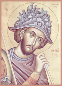 Память: 7 декабря (24 ноября) Глас 8. Припев: Святы́й великому́чениче Мерку́рие, моли́ Бо́га о на́с. |