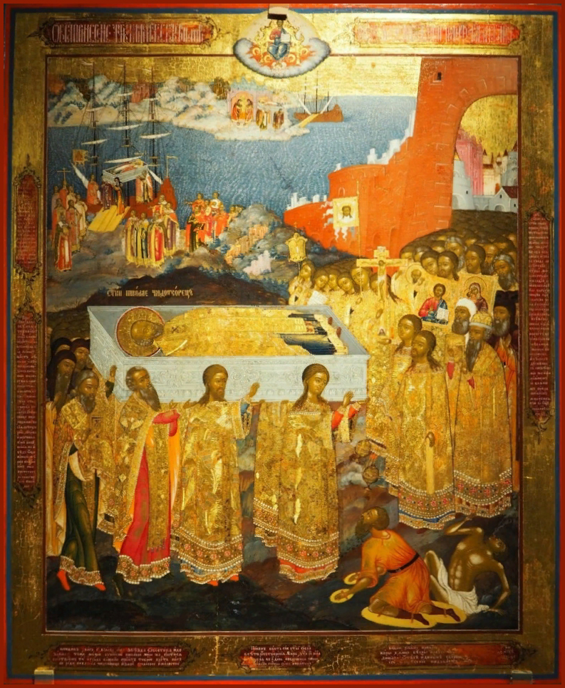 Память: 22 (9) мая, 11 августа (29 июля), 19 (6) декабря Глас 8. Припев: Святи́телю, о́тче Нико́лае, моли́ Бо́га о на́с. |