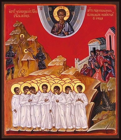Память: 17 (4) ноября Глас 4. Припев: Святи́и священному́ченицы Ника́ндро и Ерме́е, моли́те Бо́га о на́с. |