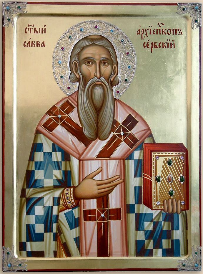 Память: 25 (12) января, 12 сентября (30 августа) Глас 1. Припев: Святи́телю, о́тче Са́вво, моли́ Бо́га о на́с. |