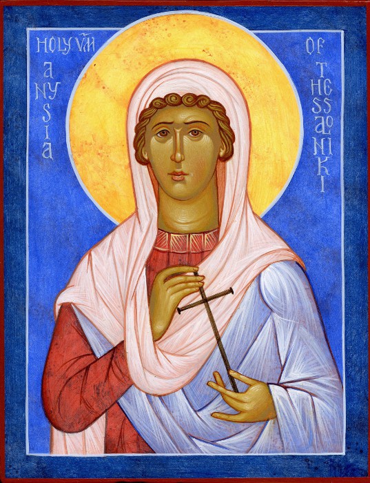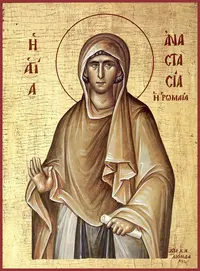 Память: 4 января (22 декабря) Глас 8. Припев: Свята́я великому́ченице Анастаси́е, моли́ Бо́га о на́с. |