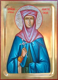 Память: 11 ноября (29 октября), 12 ноября (30 октября) Глас 8. Припев: Святая преподобному́ченице Анастаси́е, моли́ Бо́га о на́с. |