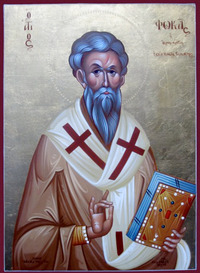 Память: 4 августа (22 июля), 5 октября (22 сентября) Глас 8. Припев: Священному́чениче Фо́ко, моли́ Бо́га о на́с. |