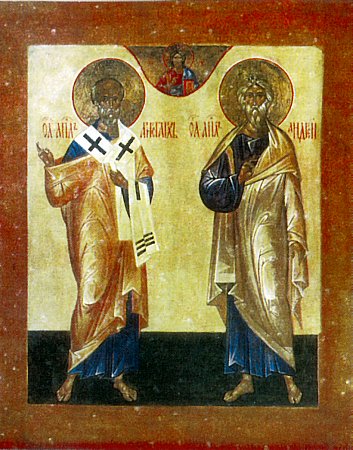 Память: 28 (15) апреля, 10 октября (27 сентября) Глас 6. Припев: Святи́и апо́столи, моли́те Бо́га о на́с. |