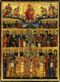 Память: 18 (5) июня Глас 8. Припе́в: Преподо́бнии отцы́ во Афо́нстей Горе́ просия́вшия, моли́те Бо́га о на́с. |