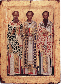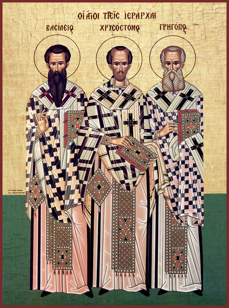 Память: 12 февраля (30 января) Глас 8. Припев: Святи́телие Васи́лие Вели́кий, Григóрие Богослóве, Иоáнне Златоýсте, моли́те Бо́га о на́с. |