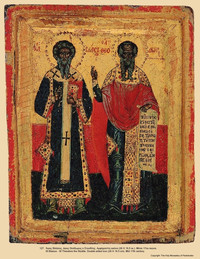 Свети́лен: Я́ко сто́лп одушевле́н, яви́лся еси́ догма́тов правосла́вия благоче́стно, обличи́в иконобо́рцов пре́лесть, те́м и, страда́нием соверши́в испове́дание, Фео́доре, просла́вился еси́. Богоро́дичен: Вси́ ве́рнии Хода́таицу Тя́ к Ро́ждшемуся из Тебе́ ны́не предлага́ют, Всечи́стая, мы́ же мно́жае, и́же сраспина́емии Тому́. Те́м не преста́й, Де́во, за ны́ моли́тися.